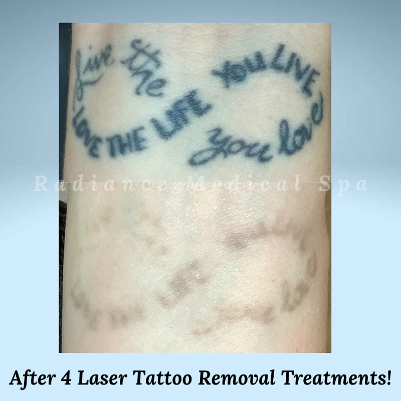 The number of treatments required varies depending on the composition, depth, and the color of the ink, as well as the size of the tattoo. You should be prepared for multiple treatment sessions, and your provider can give you a better idea of the total number of treatments needed during your consultation.
